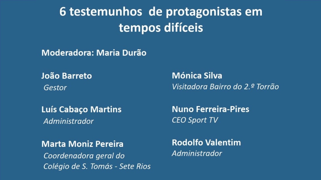 Obras Portugal organizará uma sessão remota “10 minutos de esperança” com 6 testemunhos de protagonistas em tempos difíceis. Teremos como convidados da área empresarial e social: